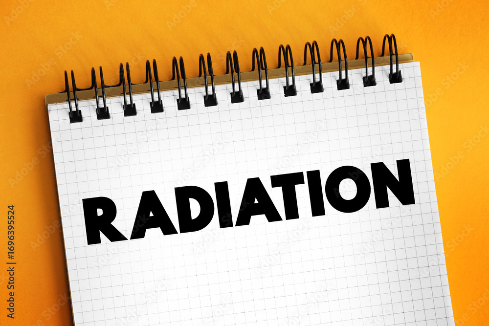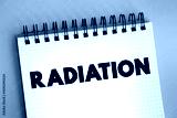 Radiation is energy that comes from a source and travels through space at the speed of light, text concept on notepad