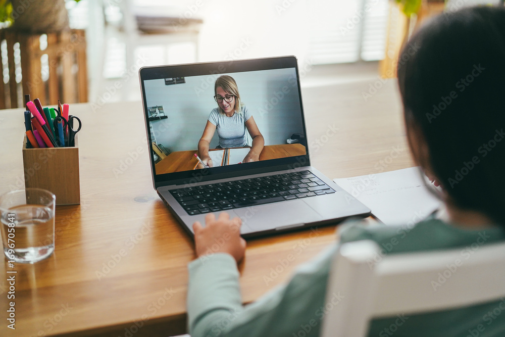 Female kid doing private class before going back to school - Education and teenager lifestyle concept - Main focus on woman teacher