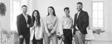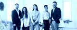 Group of smiling diverse business professionals standing together in modern office space. Successful team of young colleagues in formal and casual wear posing for photo and looking at camera. Banner.