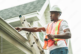 black man with hard hat to house inspector roof house