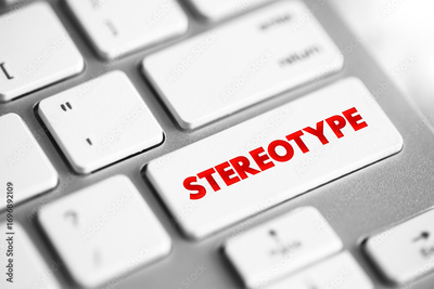 Stereotype is a generalized belief about a particular category of people, text concept button on keyboard