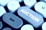 Auction is a process of buying and selling goods or services by offering them up for bids, taking bids, and then selling the item to the highest bidder, text concept button on keyboard