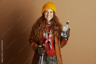 Woman Hiker in Orange Sweater and Yellow Hat