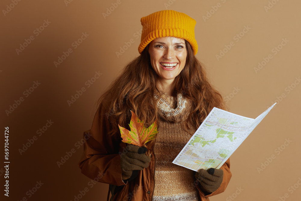 Autumn Traveler with Folded Map and Leaf