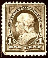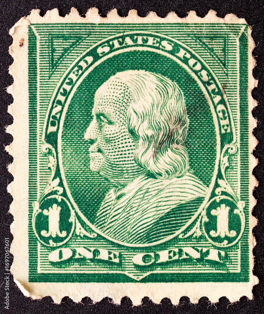 UNITED STATES OF AMERICA - CIRCA 1910.A postage stamp printed in the United States depicts a portrait of Benjamin Franklin, circa 1910