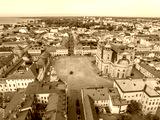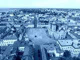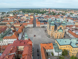 Aerial view of Kalmar old town square with Kalmar cathedral yellow building in Baroque Style