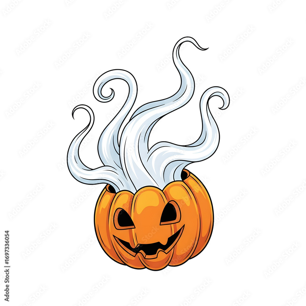 Spooky Halloween jack-o-lantern with swirling ghostly smoke creating a festive and mysterious atmosphere perfect for seasonal decorations and party invitations