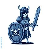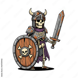 Fearsome skeletal warrior in rusted armor wielding a battle-worn sword and shield, ready for epic fantasy combat and gaming adventures.