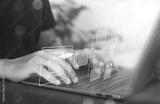 Document management system concept. Businessman use laptop computer loading documents in online archives ,Document management Storage and technology on digital document paperless operation.