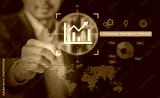 Businessmen use AI assistants to Help Analyze Information growth graphs with navigation compass and define marketing direction, planning for business finance investment technology digital marketing