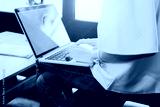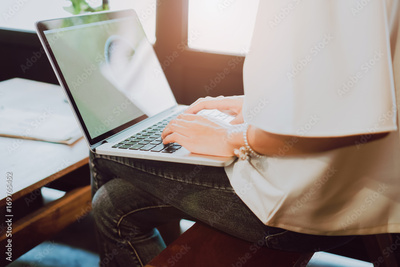 Women using a laptop in the display and technology advances in stores. Take your screen to put on advertising.