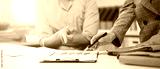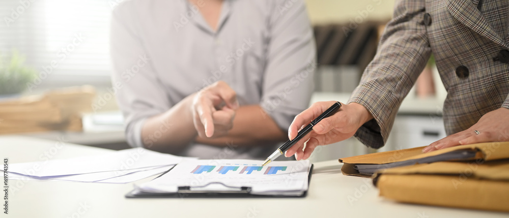 Close p of business professionals analyzing financial charts and graphs during a meeting