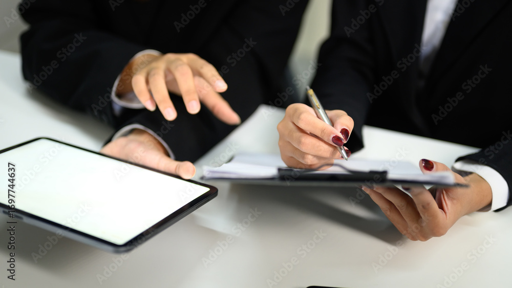 Businesswomen working together with digital tablet and discussing reports and strategy