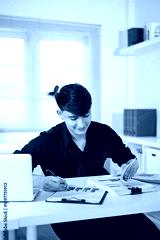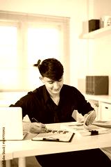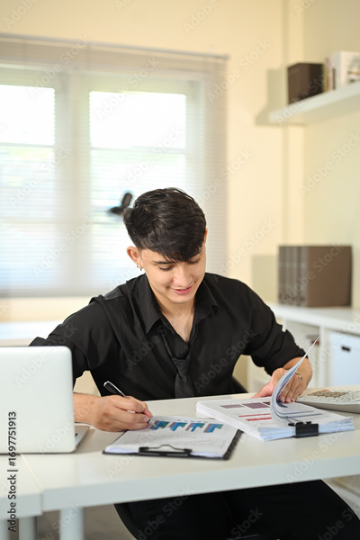 Young businessman reviewing financial documents and charts at office desk