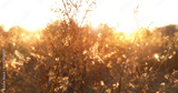Beautiful sunny landscape with dry meadow grass of sunset, nature abstract background. summer end or autumn season. selective focus