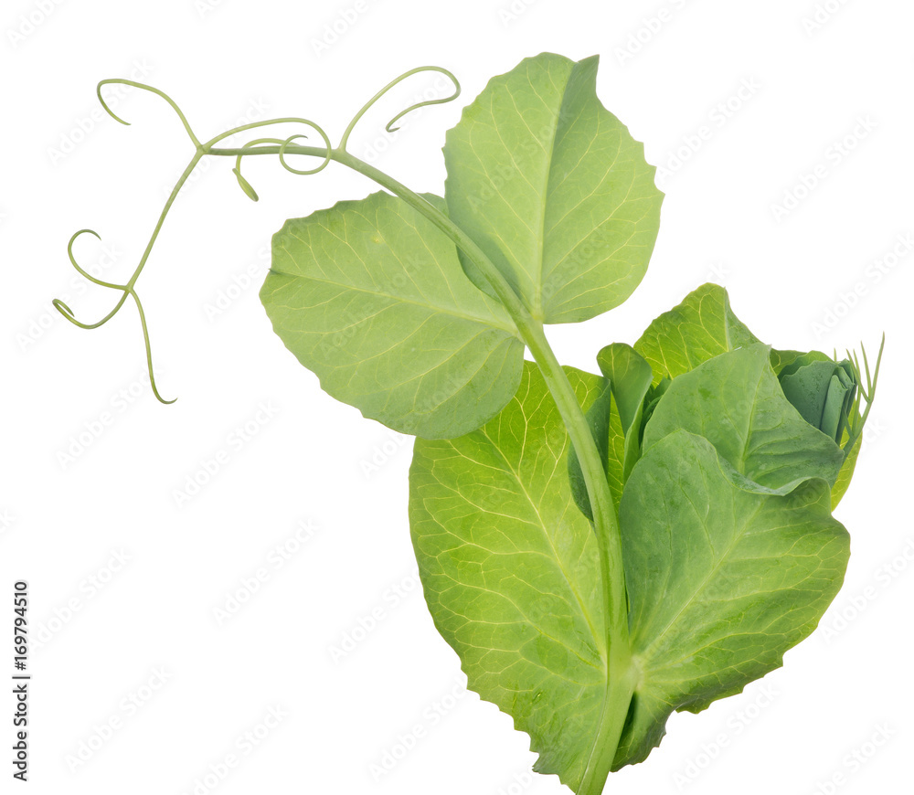 pea stem with light green leaves and curls