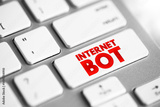 Internet Bot - software application that runs automated tasks over the Internet, usually with the intent to imitate human activity, text concept button on keyboard