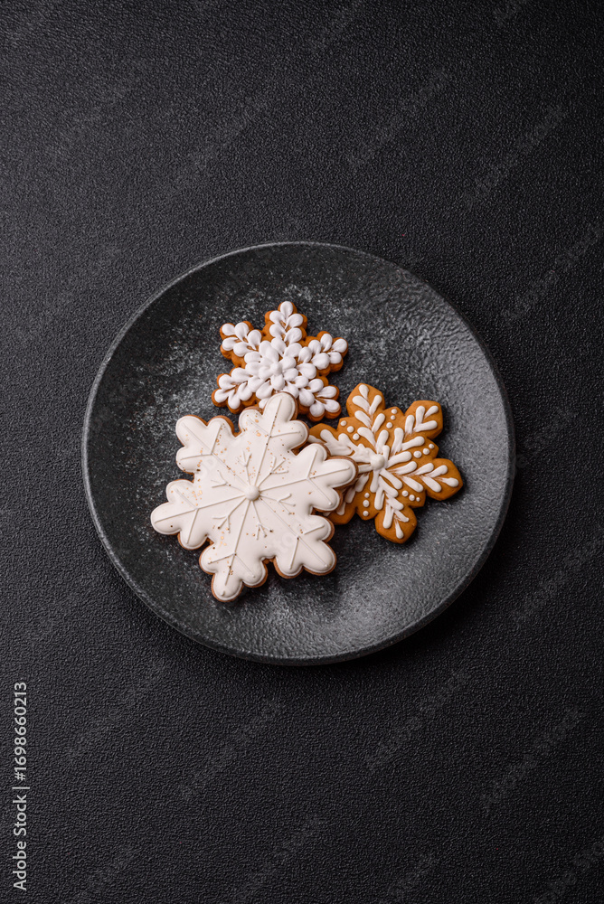 Christmas gingerbread as food background for winter holidays. Sweet christmas gingerbread