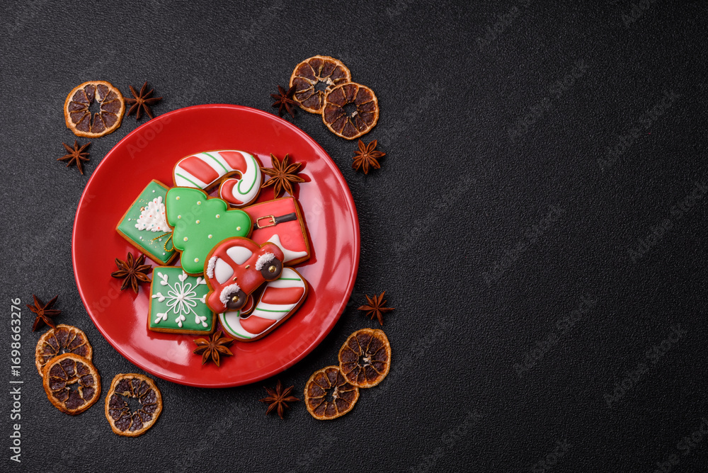 Christmas gingerbread as food background for winter holidays. Sweet christmas gingerbread