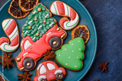 Christmas gingerbread as food background for winter holidays. Sweet christmas gingerbread