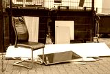 bulky waste reduction, large pile discarded furniture, chair, panels, renovation or decluttering process, used things on street, problem shredding garbage, diverted for recycling, pollution nature