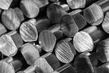 Close-up of cut non-ferrous metal rods stacked together, showing texture and reflections, industrial macro detail