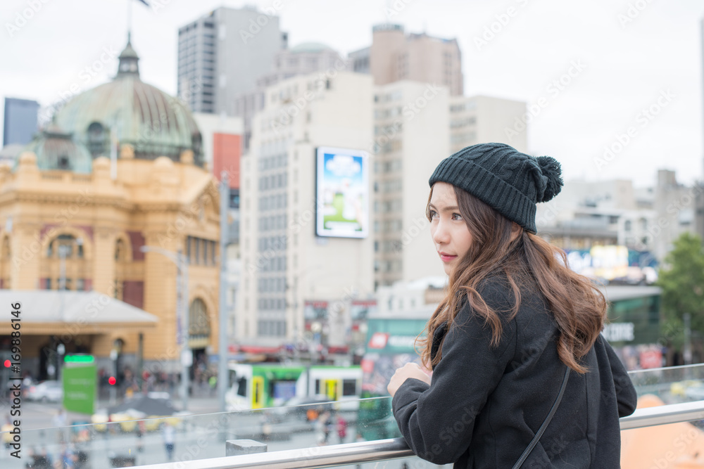 Portrait of Asian women travel in Melbourne the most liveable city in the world of Victoria state of Australia.