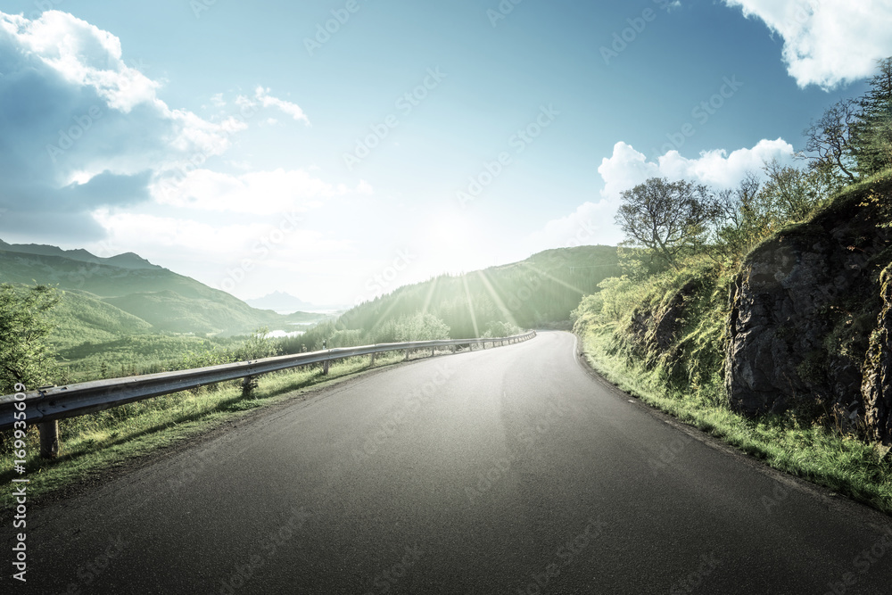 summer road in mountain, Lofoten islands, Norway