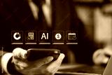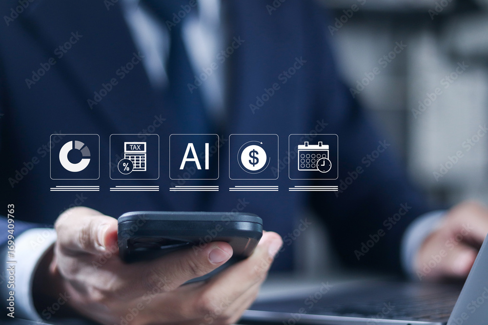 AI technology in finance and accounting. preparing tax return, with artificial intelligence tools. Accounting paycheck documentation and financial fee incentive. businessman with virtual icon.
