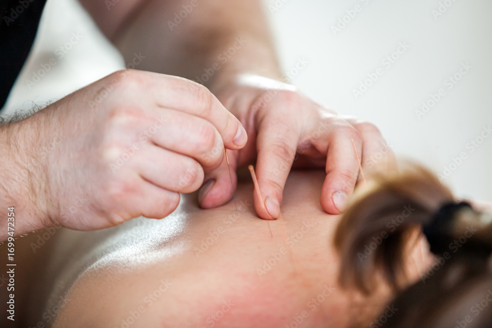 Chinese medicine. Close-up of a doctor's hands doing acupuncture