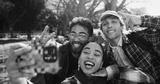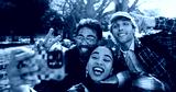 Selfie, friends and outdoor in park with phone, carefree and social media post on university break. Happy, students and photography with technology, group picture and memories on spring vacation.