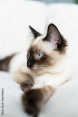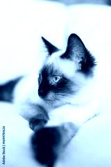 Balinese Siamese Cat with Blue Eyes and White Fur, Felis catus