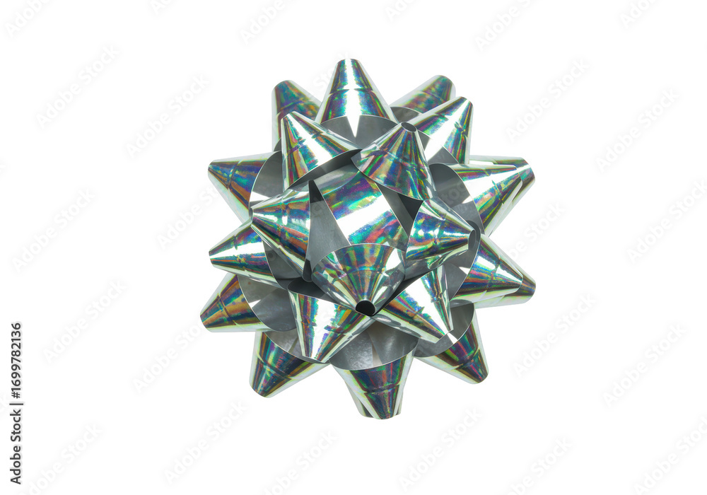 Isolated shiny silver gift bow sparkles, for birthday present wrapping and party decoration