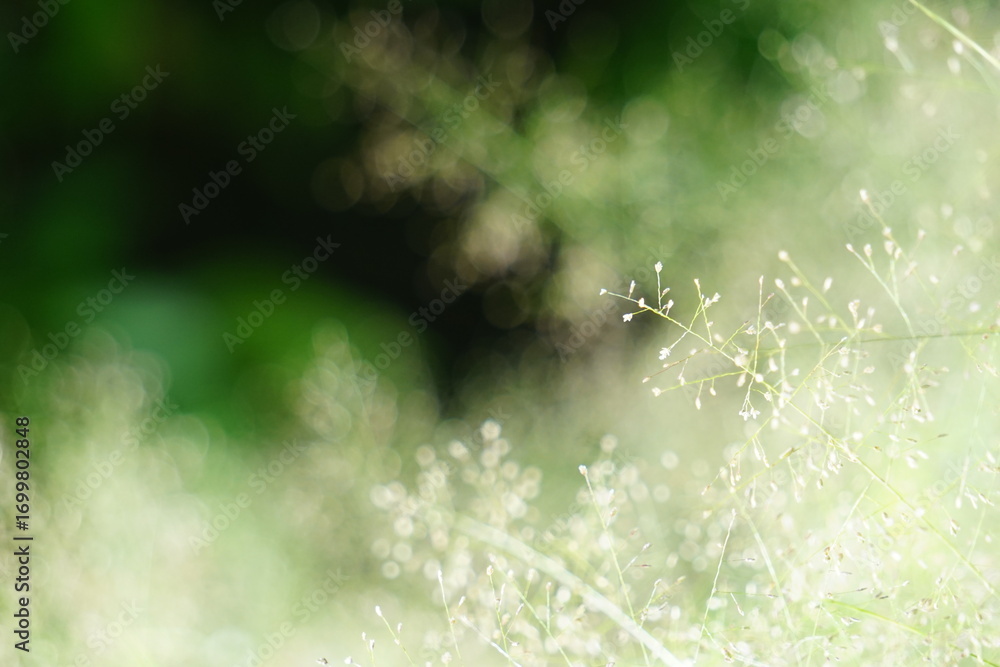 Beautiful blurred background nature in pastel colors with a soft focus of blue shades. fresh wallpaper concept, among green leaves and other blossom blur background.
