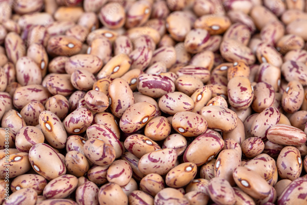 Raw Organic cranberry bean or roman beans on white background.
