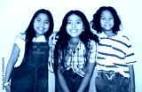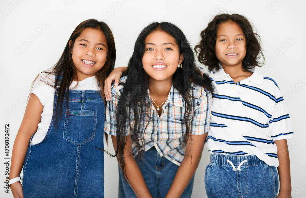 teen girl with 9 years thailand twin on studio white background with teen sister