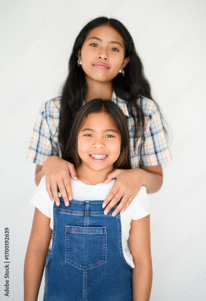 9 years thailand with his sister on studio white background