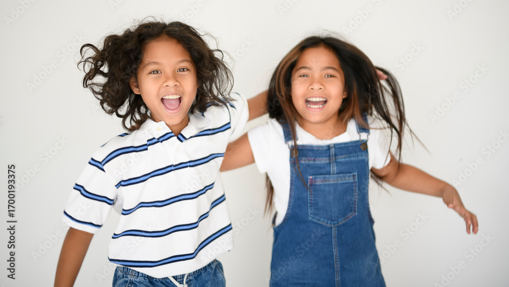 two 9 years thailand twin on studio shot isolated white background