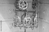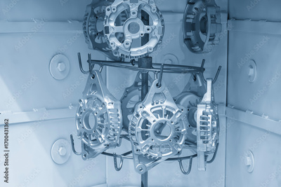 Close up scene cleaning and etching surface process the generator parts in sandblast machine.