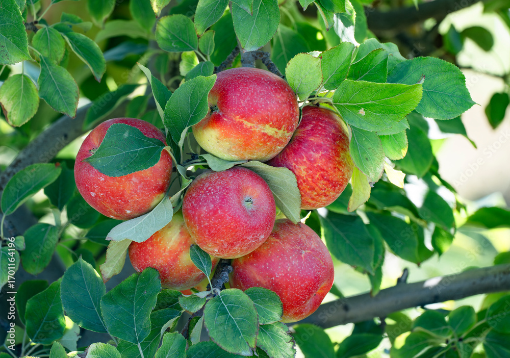 red apples on the tree in harvest season