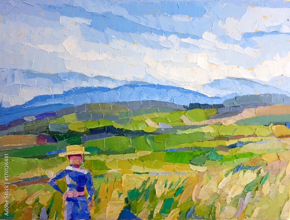 Rice field farmer oil painting closeup texture