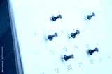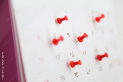 Desk calendar with pins for reminder in office workplace concept of time management agenda event planner or personal organization for business meeting and schedule planning or holiday plan.