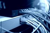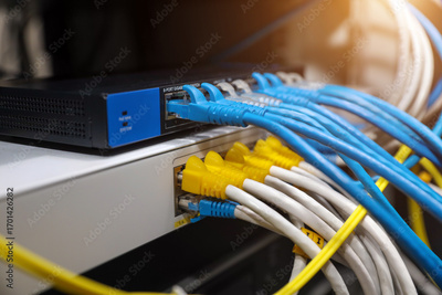 LAN internet network cable or RJ45 UTP fiber optic connect to network management equipment for cloud computing computer data link file transfer or wifi networking devices technology server system.