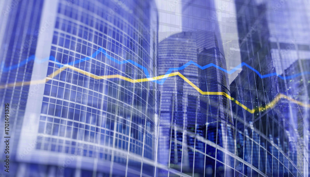 Universal Financial stock trading graph chart diagram business finance concept double exposure mixed media