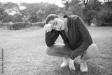 Sweaty Woman Trying To Wipe Her Head Sweat Through Her Hands After Jogging
