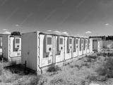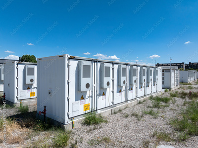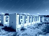 Aerial view of battery energy storage systems under a clear blue sky