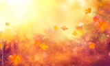 Fall background. Autumn colorful leaves and sun flares