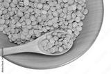 Brown lentils poured in wooden bowl with spoon on transparent background