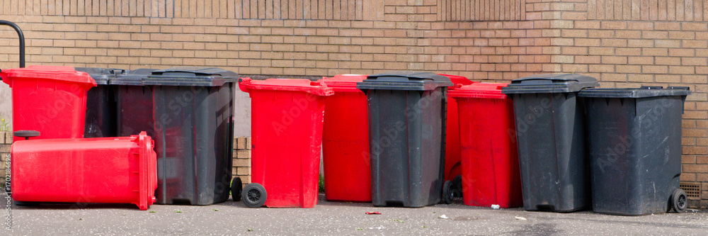 Wheelie bins in row for refuge collection outdoors