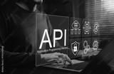 API Application Programming Interface Concept. A programmer types on a laptop, interacting with digital icons representing API development, security, and cloud computing. Application Software Tool,